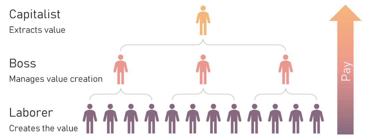 If you think of our system as a pyramid, the value created by the base, the majority, is appropriated by a minority sitting at the top. This is not a controversial statement—